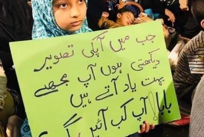 وتجمّع المحتجون الشيعة في الشوارع الرئيسية وأمامَ المحكمة العليا الباكستانية، للكشف عن مصير ذويهم وأحبائهم من المفقودين والمعتقلين في السجون.